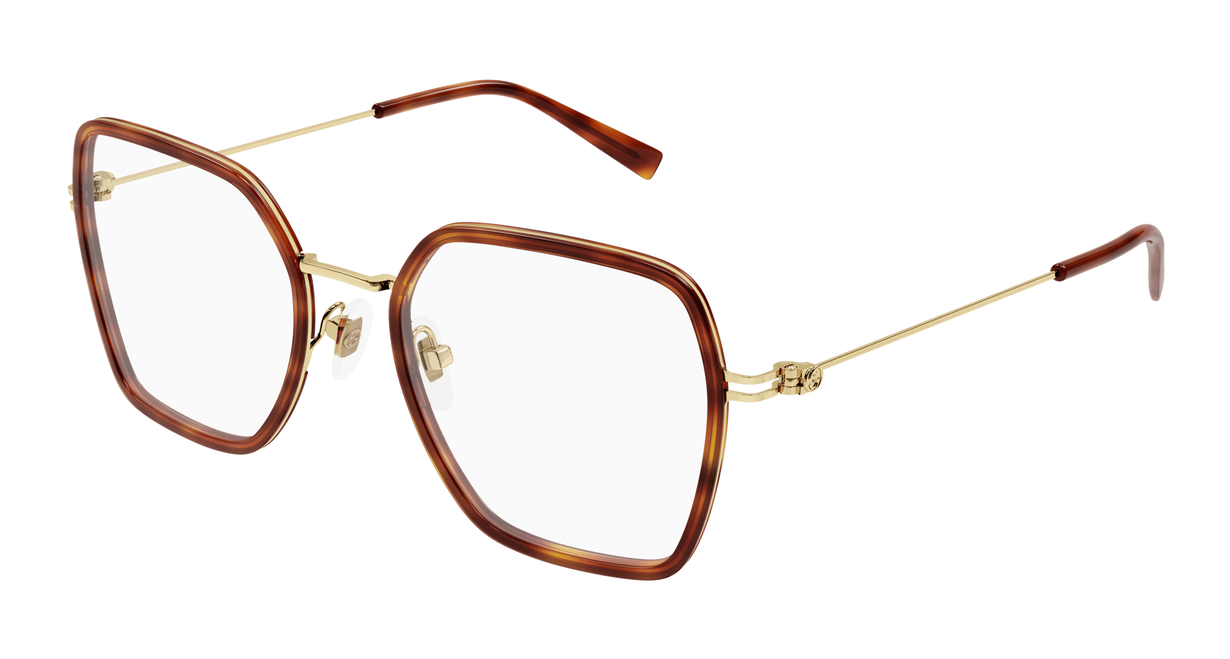 Sur les montures Gucci, le mors de cheval apparaît subtilement sur les branches ou les finitions métalliques, apportant une touche iconique immédiatement reconnaissable.